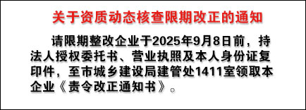 - 關(guān)于資質(zhì)動(dòng)態(tài)核查《責(zé)令(限期)改正通知書(shū)》的送達(dá)公告